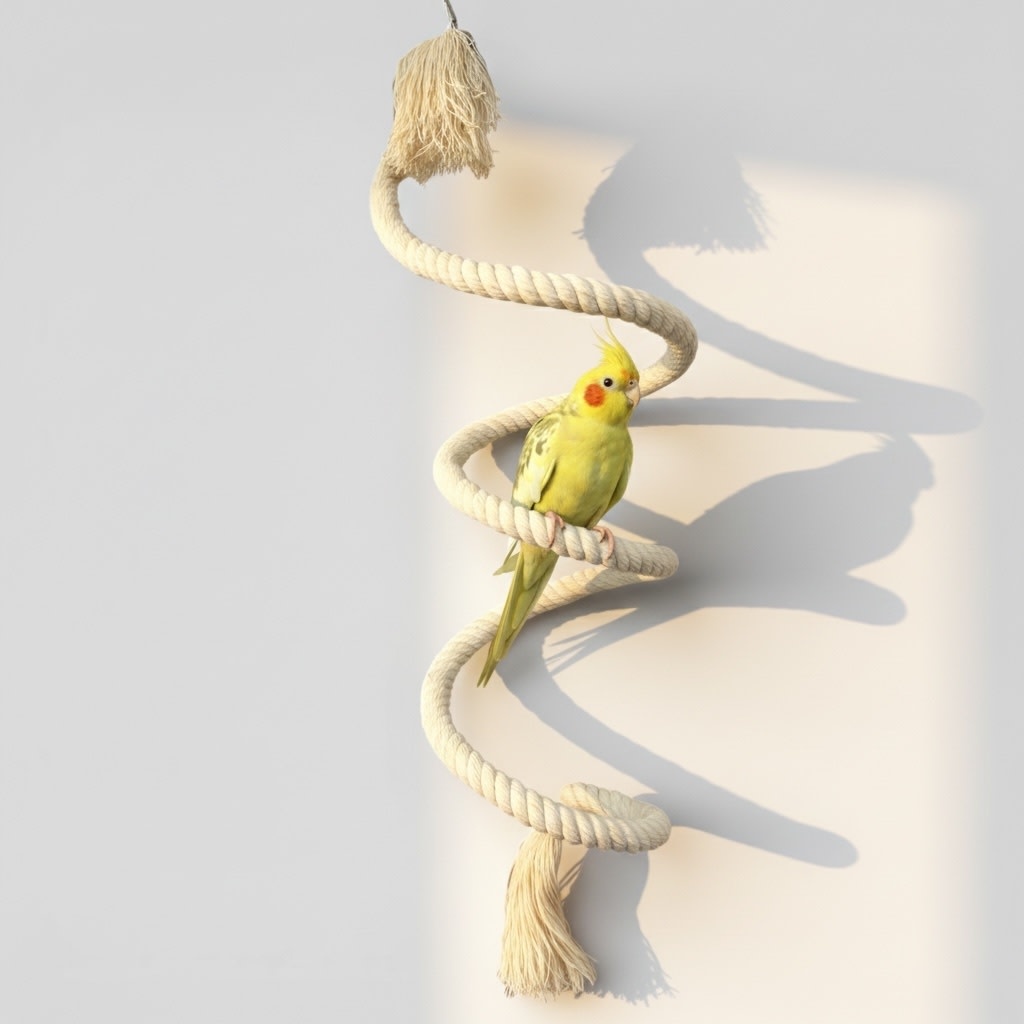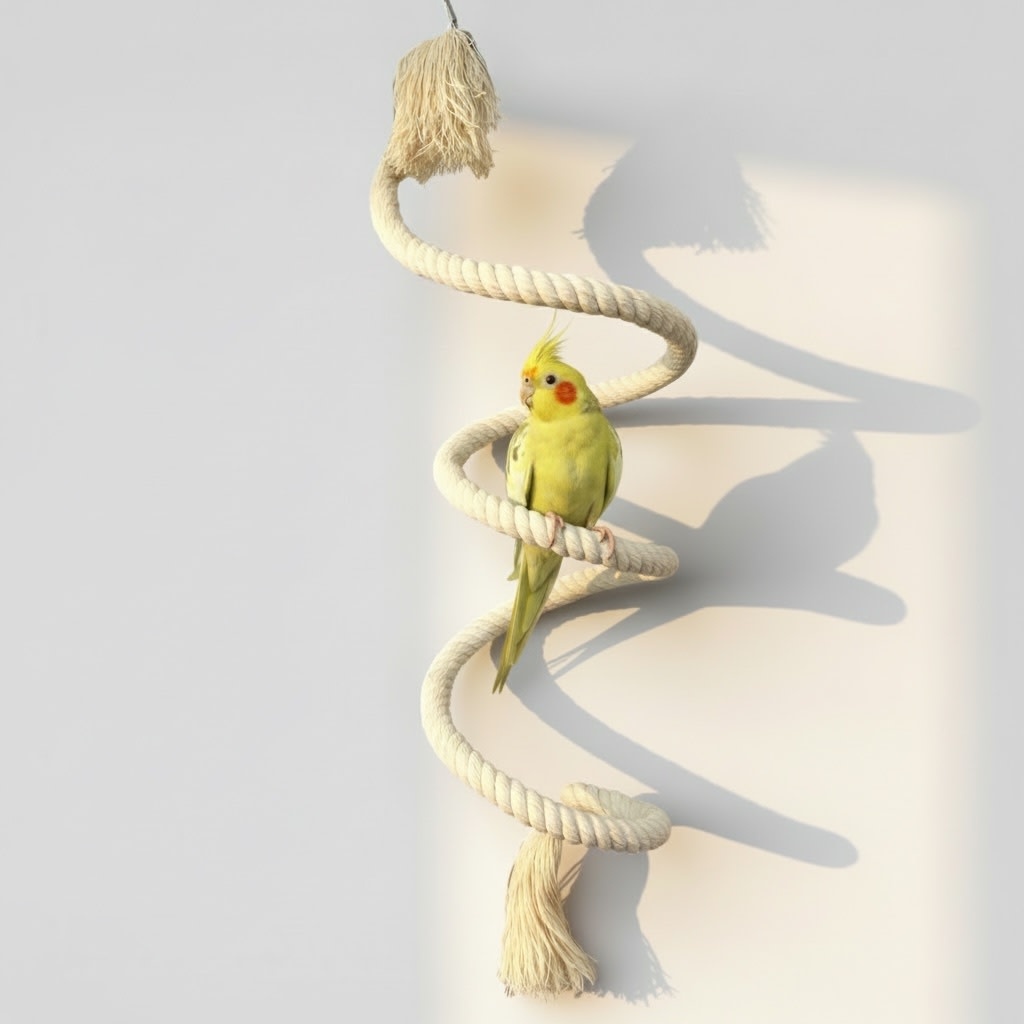 Natural cotton boing perch measuring 1/2" x 36". Soft, flexible, and gently bouncy for fun movement and foot health. Ideal for budgies, cockatiels, conures, parrotlets, and other small birds.