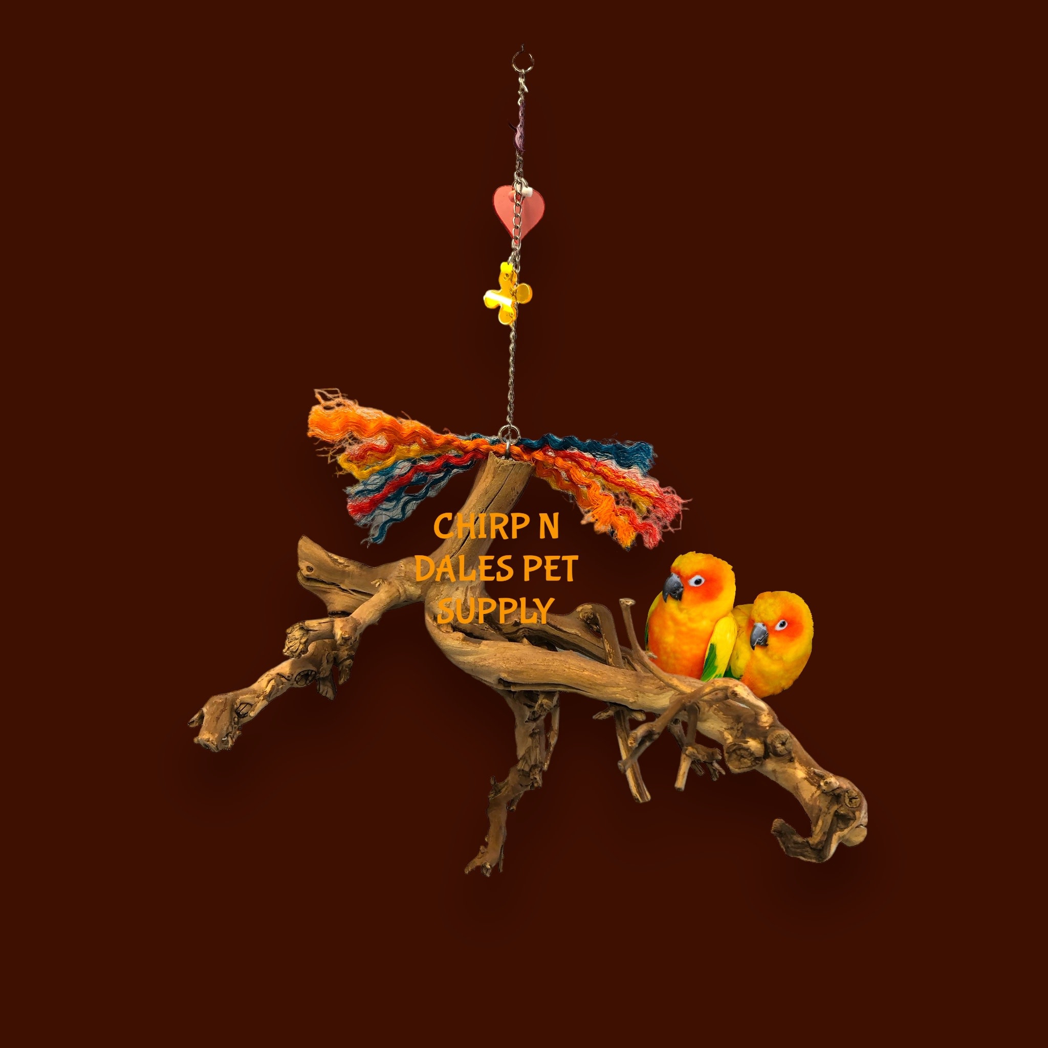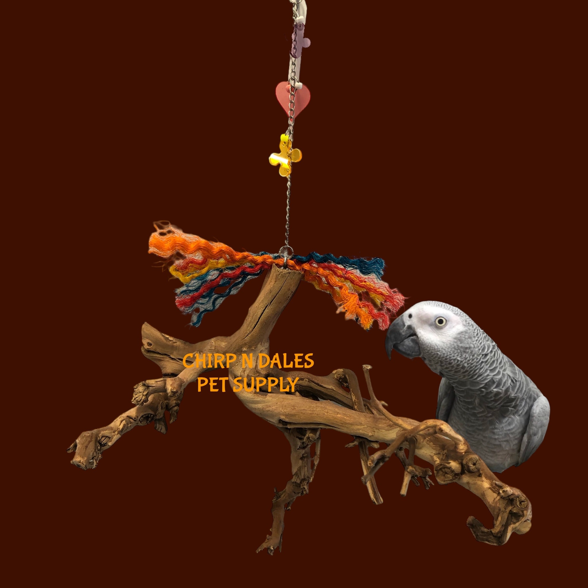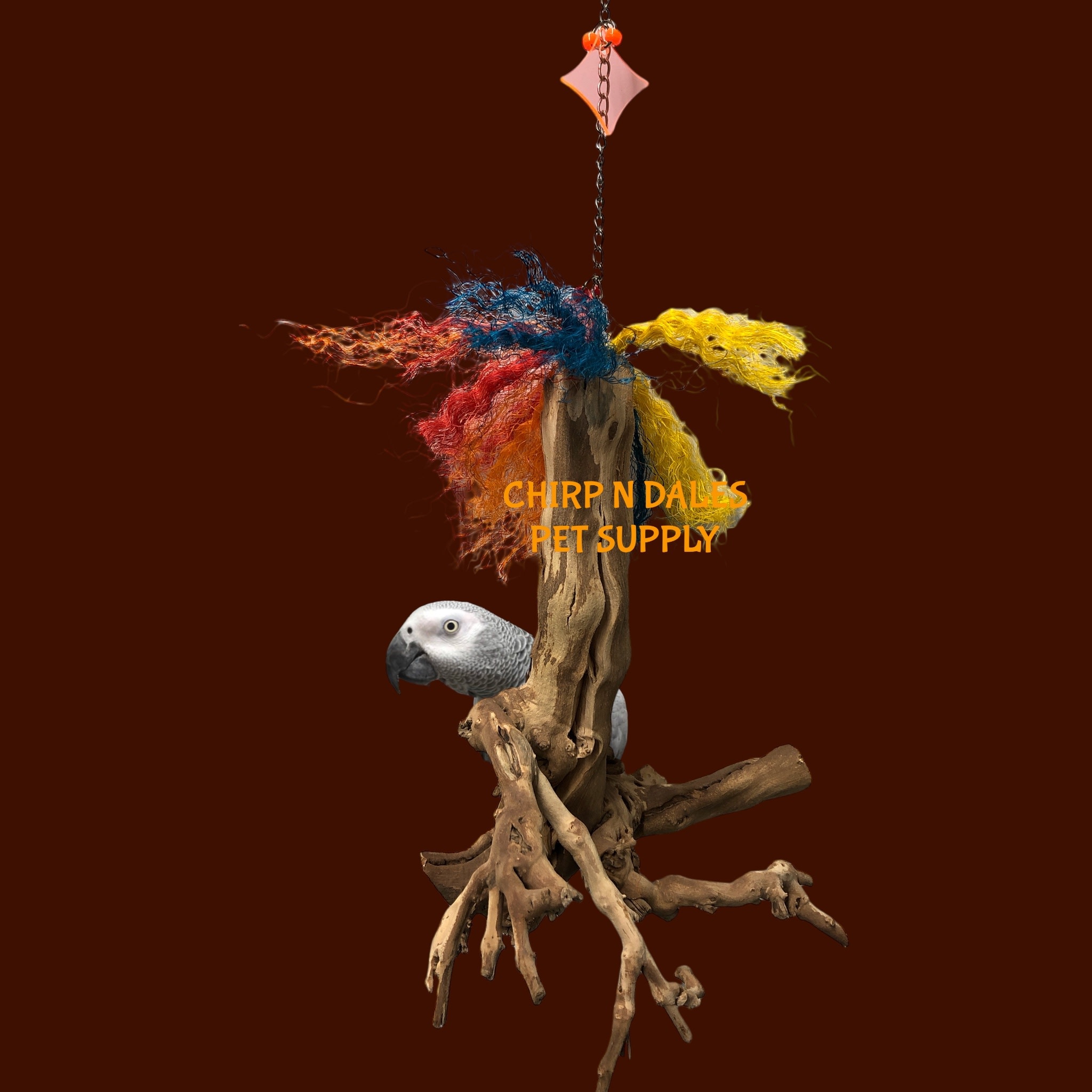 Bonkers hanging root. Suitable for all bird sizes from finch to Amazons, etc, and everything in between!.