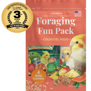 Introducing Foraging Fun Packs, nutritionally complete foraging fun that Cockatiels love! Each bag is filled with a variety of tastes, textures and eye-catching foods that make eating healthy fun for your feathered friend.