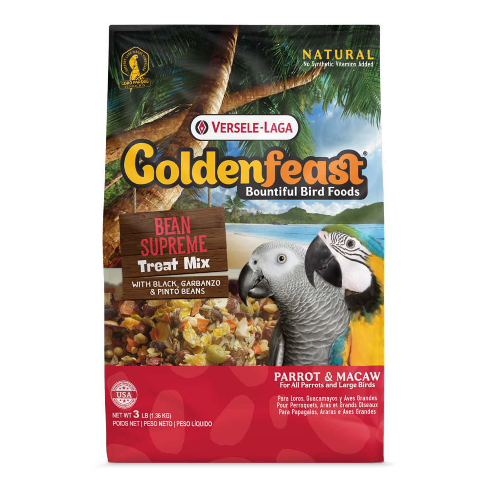 Nutritious bean-based treat mix for parrots packed with protein, vegetables, and wholesome ingredients to support overall health and enrichment.