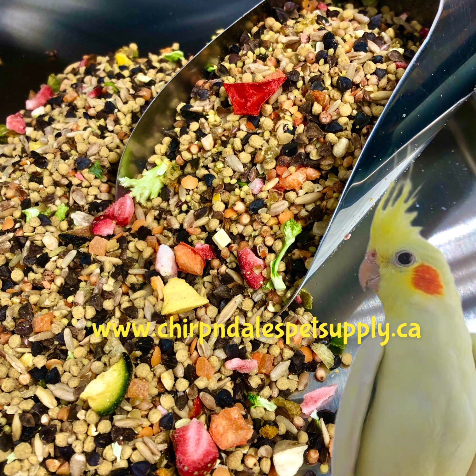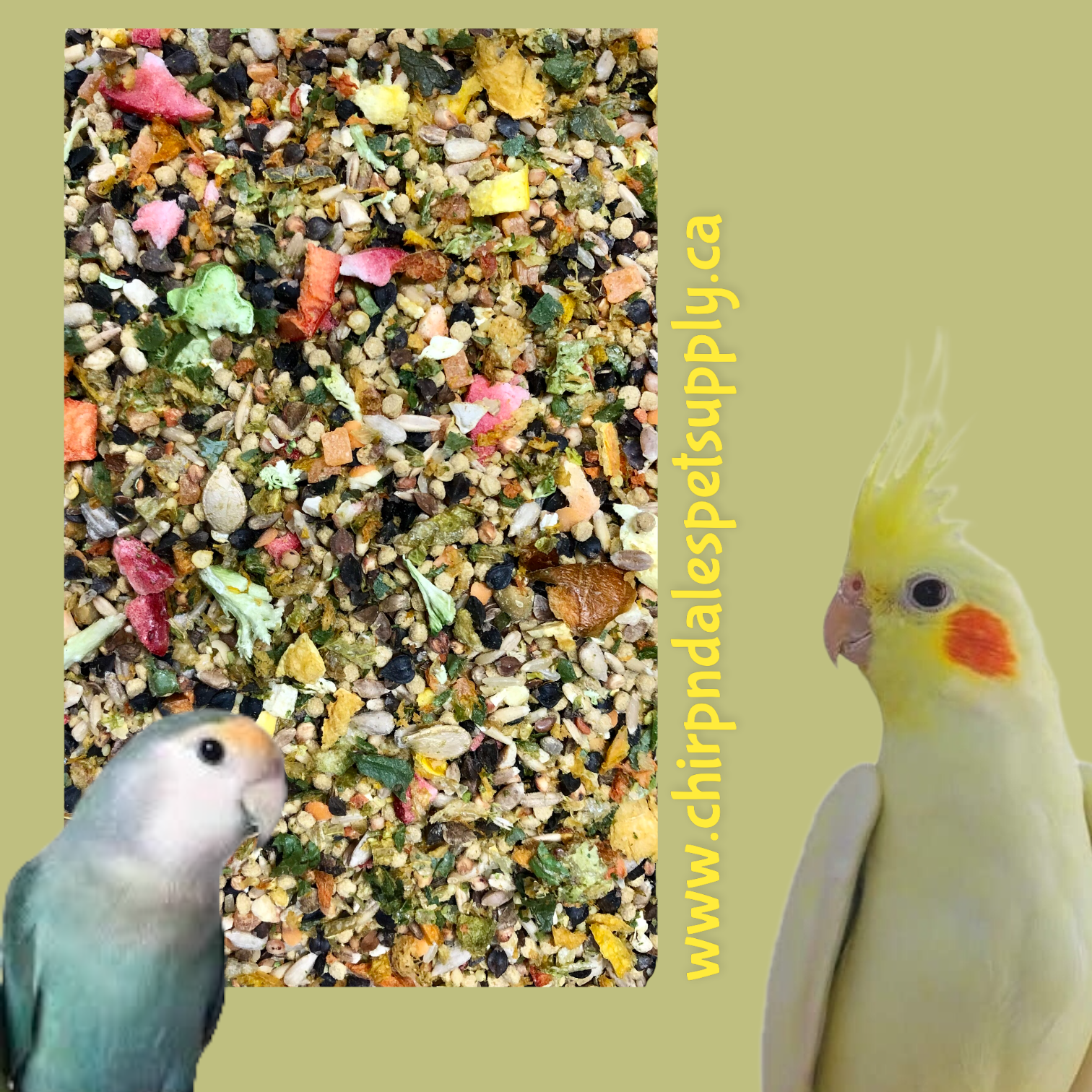Our best-selling custom bird mix packed with pellets, grains, legumes, greens, and freeze-dried fruits and veggies. A nutrient-rich, irresistible blend made for small to medium birds.