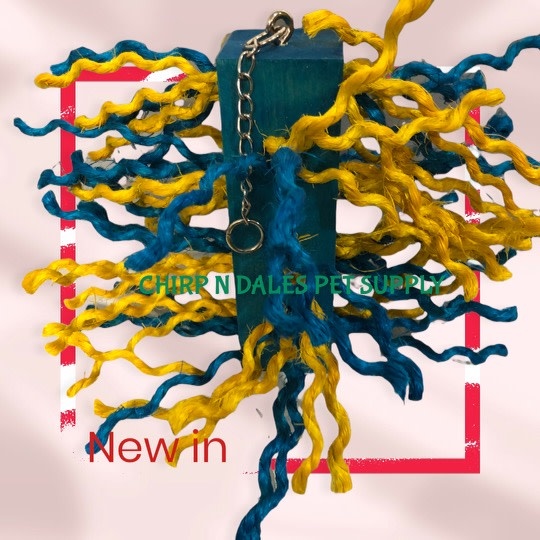 Big chunky block preener is filled with colorful sisal rope. 6" x 2' x 2'