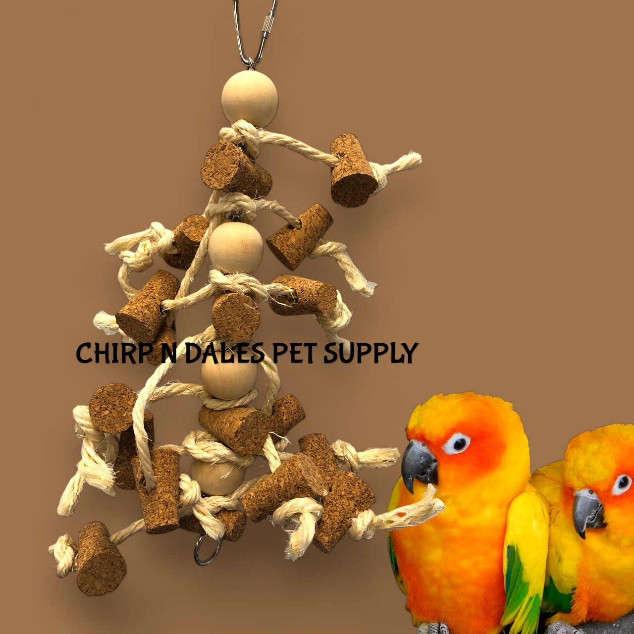 Multiple corks with sisal ropes will give your feathered friend a lot of fun.