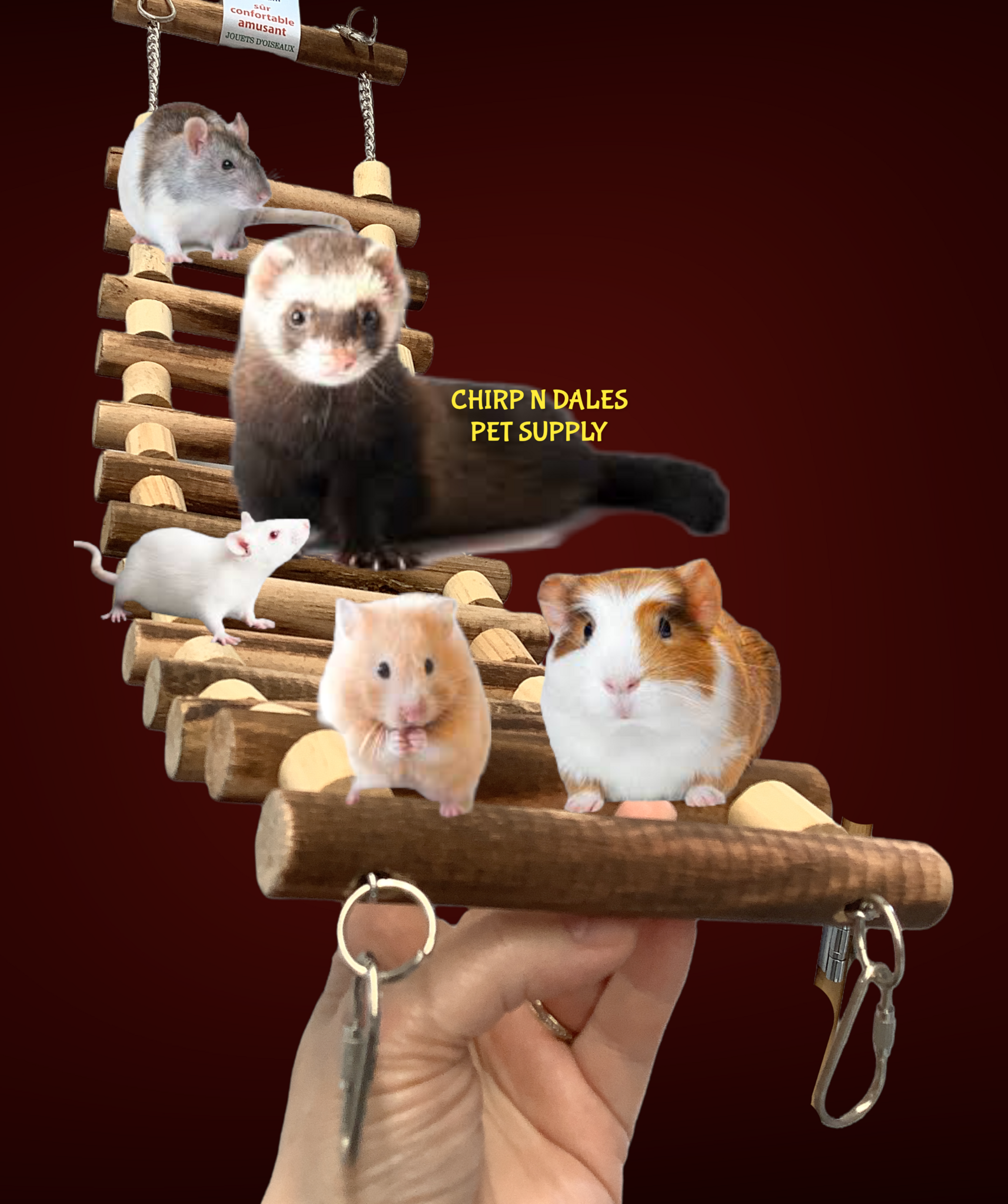 Great ladder/ bridge for critters and small birds up to Amazon/African Grey sized birds.