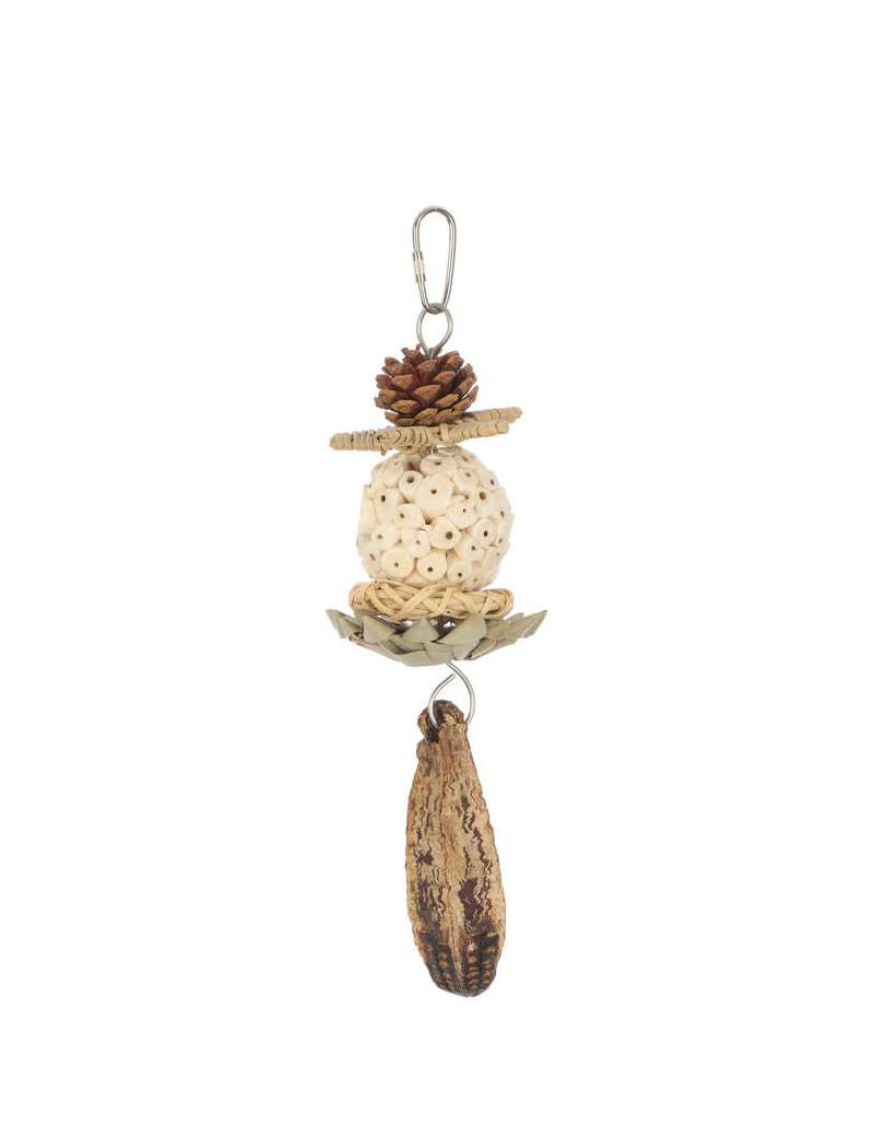 Discover the Sola Fun Natural Parrot Toy, perfect for birds who struggle with hard wood toys. Made from softer, natural materials like sola atta ball and vine ring, it offers safe chewing. Attachable to cages for instant fun