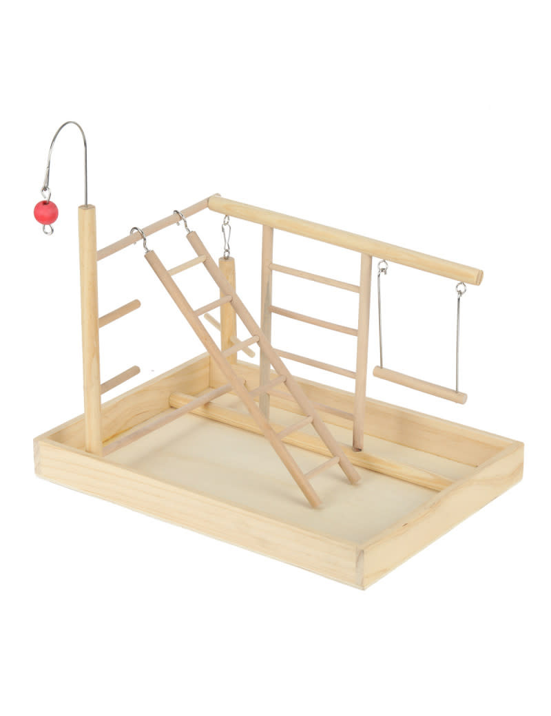 13” x 9.5” x 14 highGreat play gym for small birds.