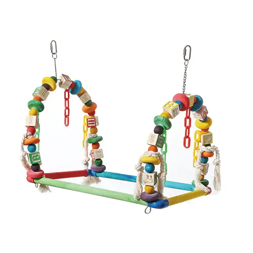 Double wooden block swing with plastic chain