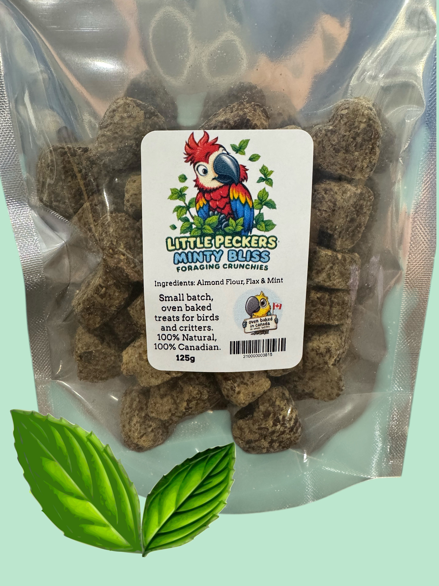 Treat your parrots, birds, and critters to Little Peckers Oven Baked Minty Bliss Foraging Crunchies! These heart-shaped, crunchy, light snacks are baked in small batches in Canada with all-natural almond flour, flax, and a hint of mint. Perfect for all sizes, they come in six flavors to spice up snack time. Flax delivers omega-3s for glossy feathers, healthy skin, and a strong heart, while mint soothes tummies and adds a cool twist—great for squawking parrots and curious critters. Foraging keeps minds sharp and spirits high, making every peck a mini adventure. Your little peckers will flip for these blissful bites!