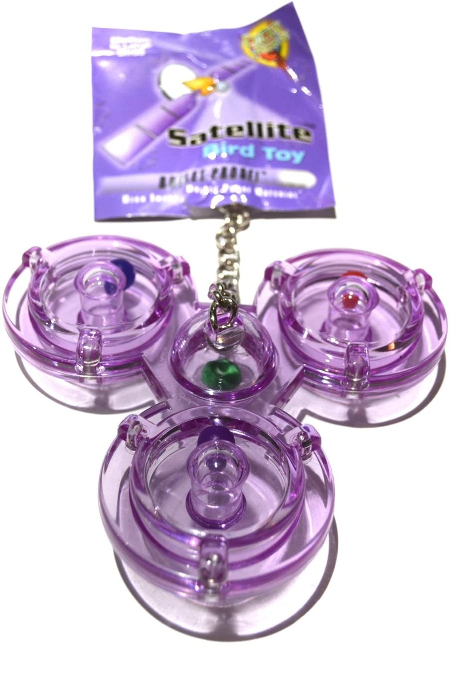 Bullet Proof Acrylic!Amazon and Macaw Proof!Large Satellite is a heavy duty, acrylic, colorful purple toy, swings and has balls that rattle to keep your bird busy for many hours.Stainless Steel ChainBird ProofBird SafeChew Proof8.5"L x 6"W x 1.5"D