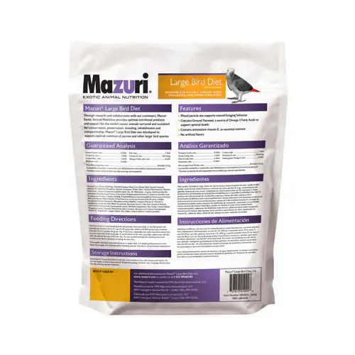 - Monitor the bird’s weight and behavior carefully during the conversion period and make sure it is eating the new diet. Be especially attentive during the 10th to 12th day. If the bird is losing weight, or if the bird is not consuming the product, offer the bird a mix of50% seed and 50% Mazuri® bird diet and restart the conversion process from this point.