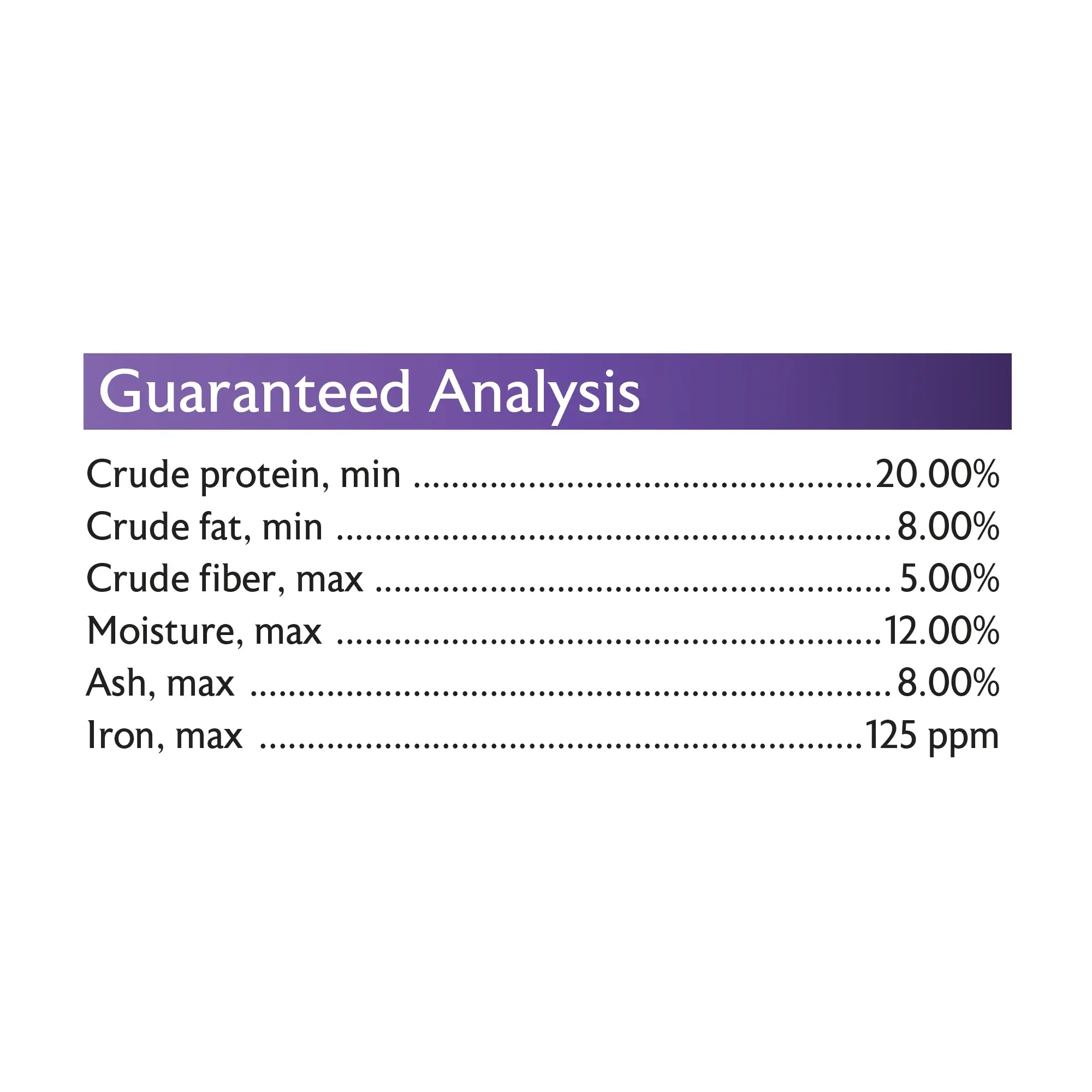 Simplifies the feeding of Softbill birds such as Mynahs and Toucans, contains fructose. Iron levels are less than 60 Ppm, well below the safe maximum levels with 18% protein and 8% fat.