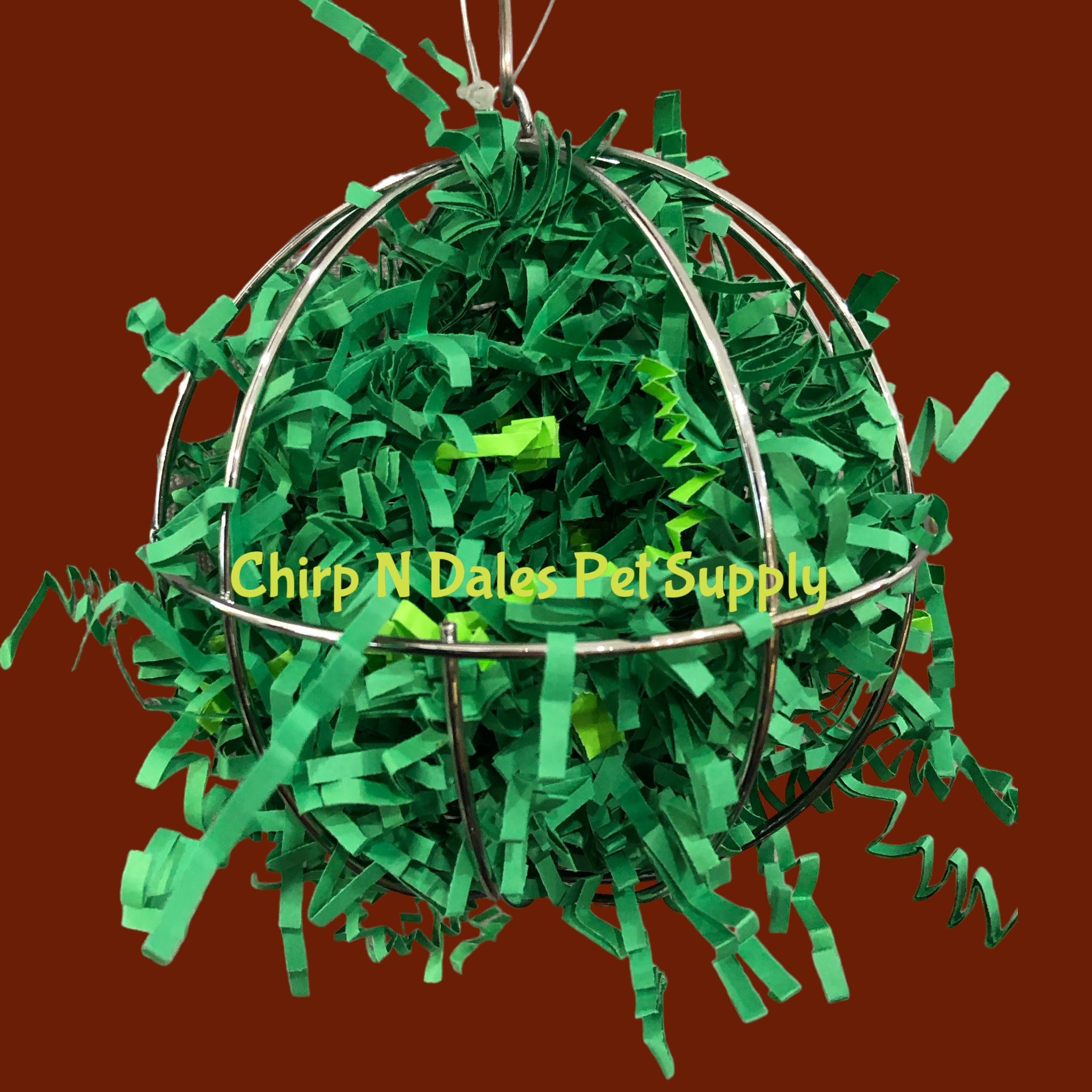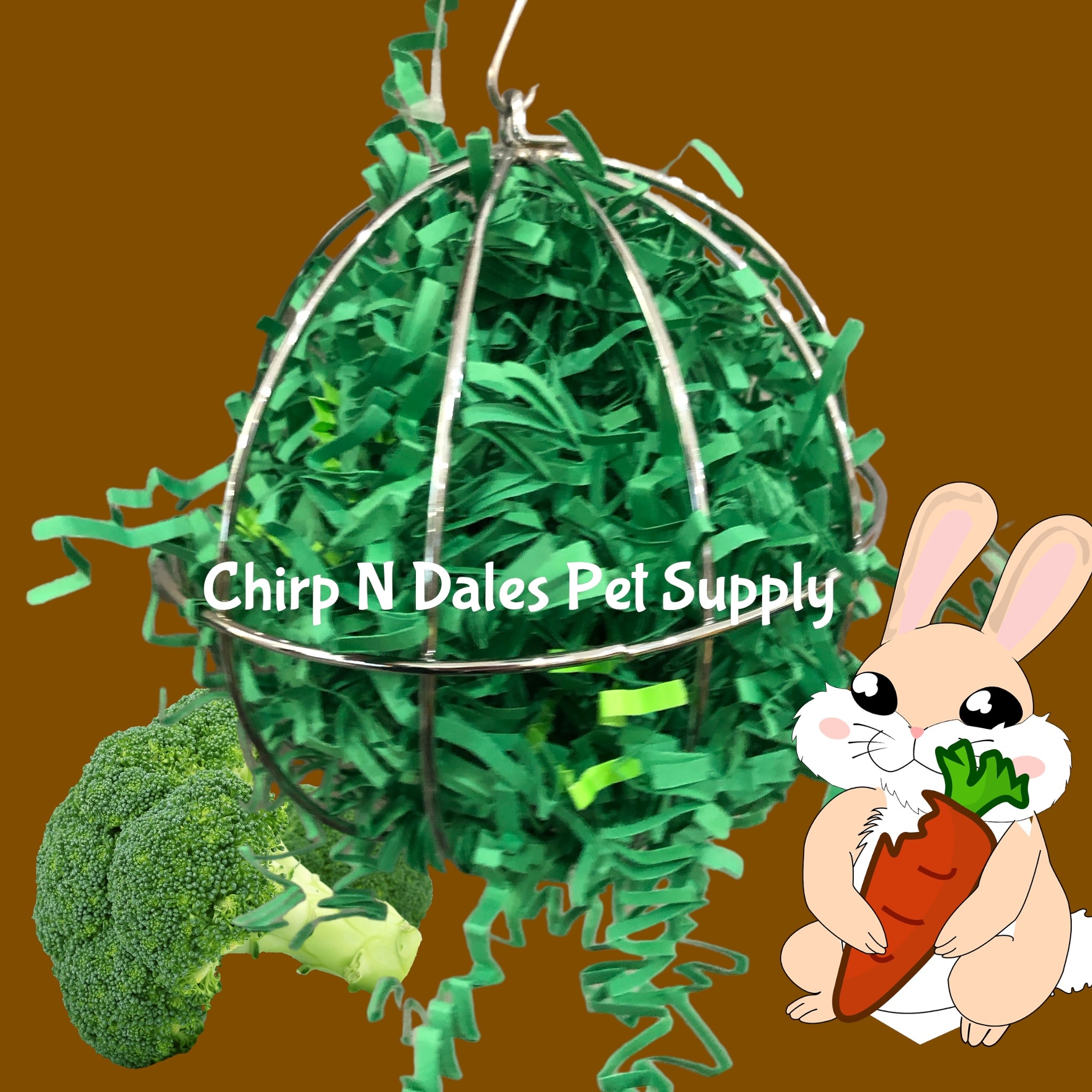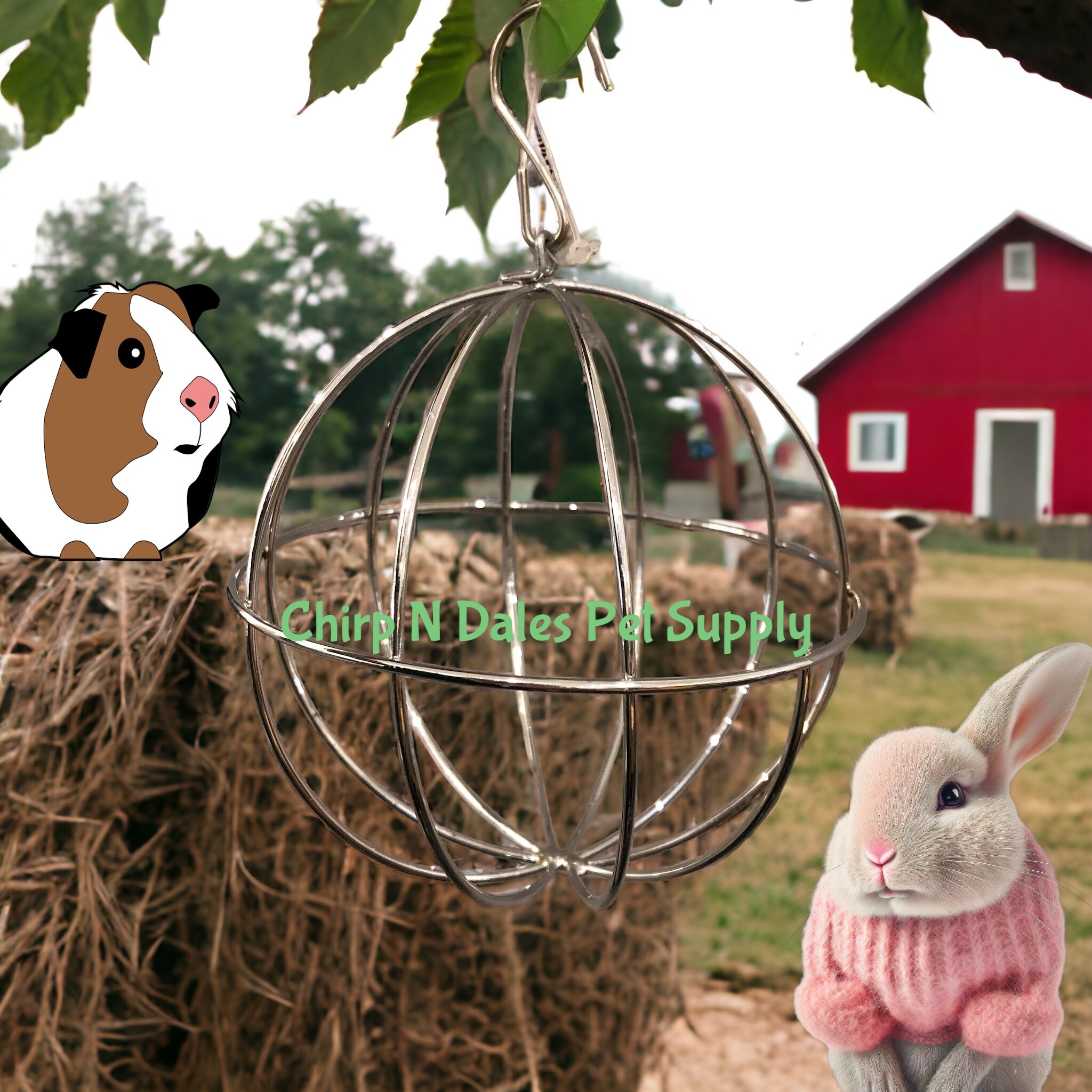 Metal ball diam. 12 cm. Fill the ball with hay and hang in the cage of your herbivorous pet (dwarf rabbit, guinea pig, chinchilla). This ball prevents hay from being soiled on the bottom of the cage. Practical and hygienic accessory.