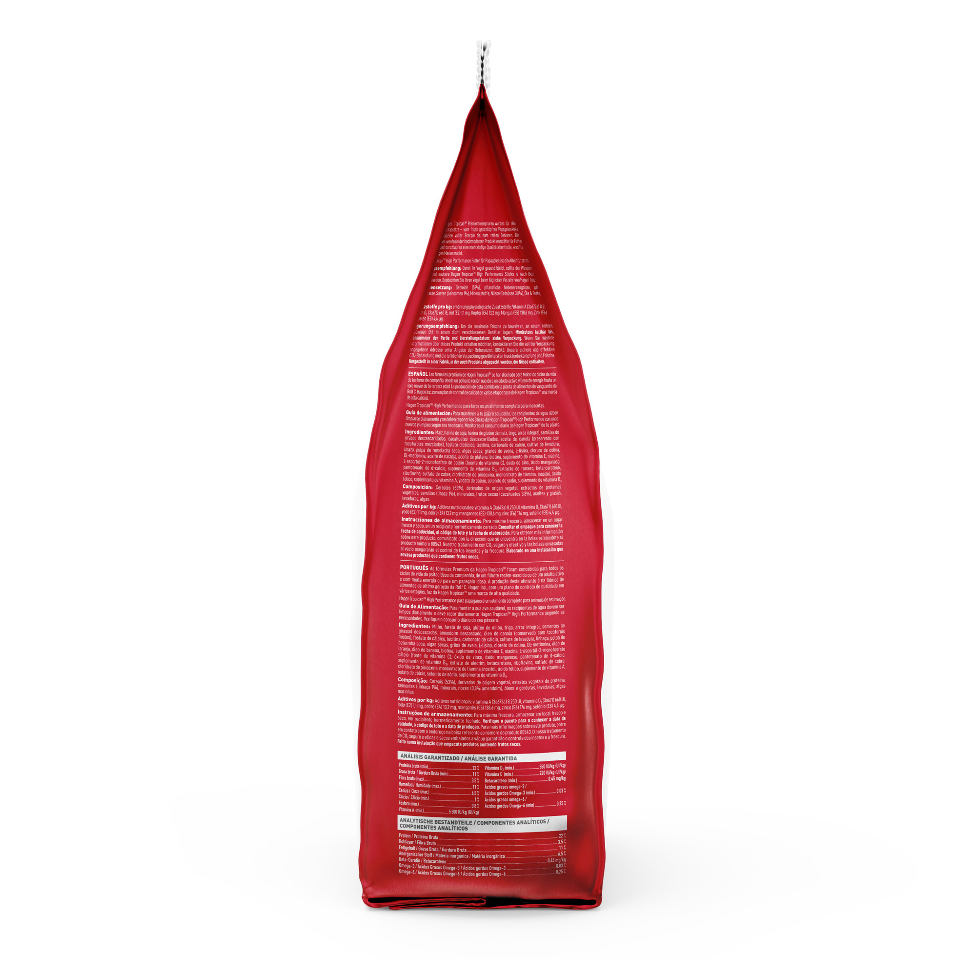 Tropican High Performance Sticks for Parrots is a scientifically formulated and completely balanced diet that meets the higher requirements for breeding (parental egg laying and rearing of young) and growing Parrots (hand-feeding from hatch). Since Tropican incorporates vitamins and minerals, a vitamin supplement is not needed.