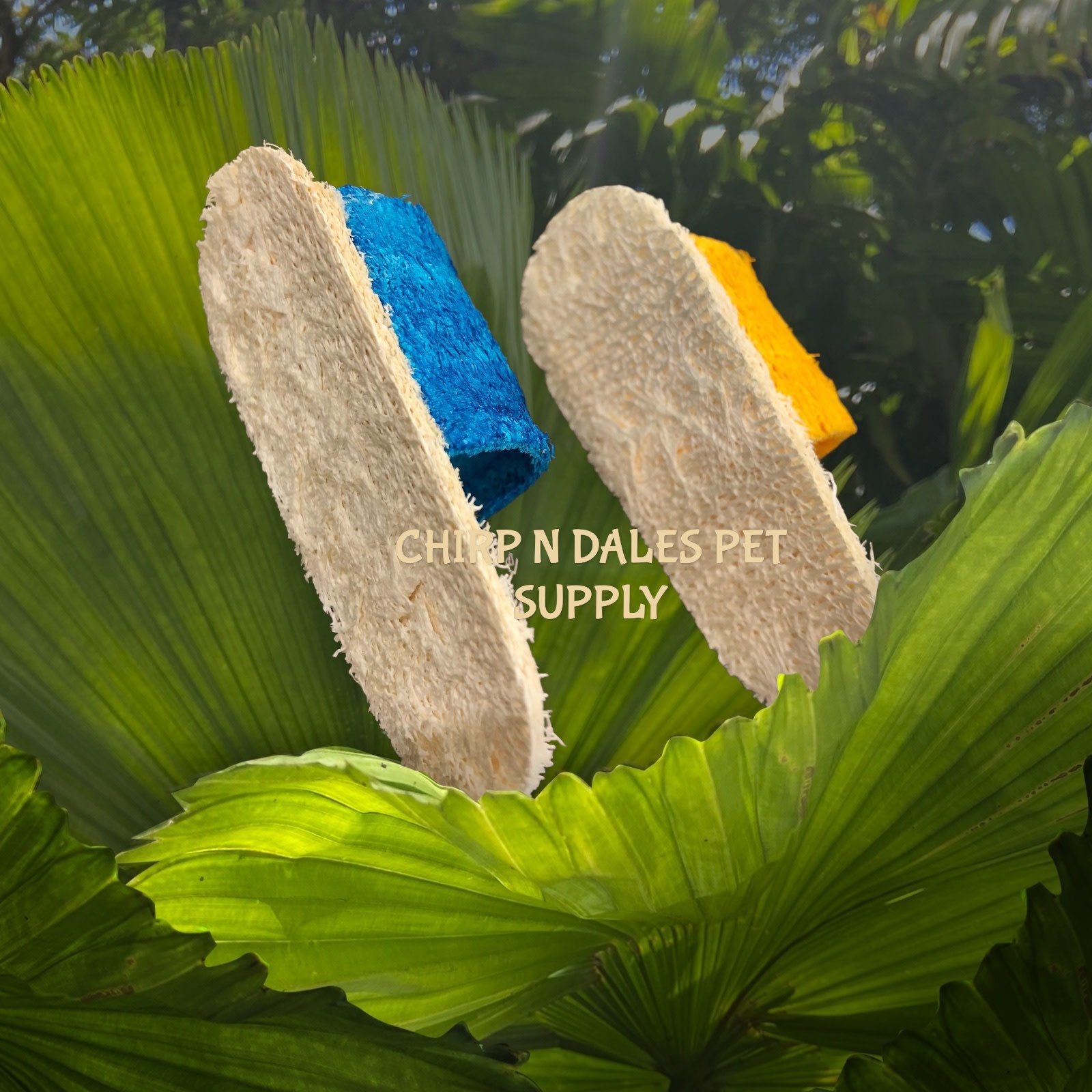 Cute natural loofa sandles are great for building toys or as a fun, foot toy!