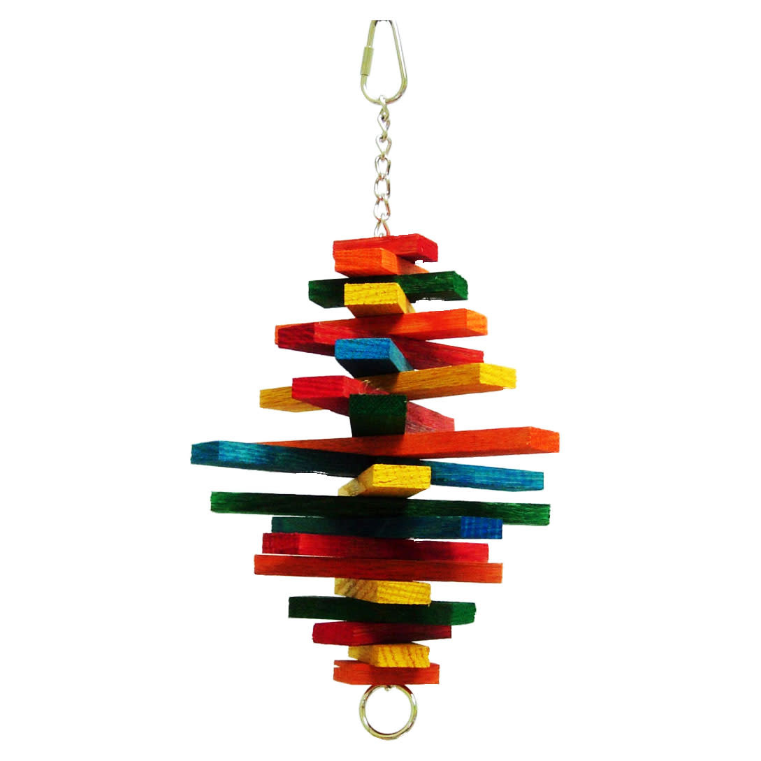 Is an interesting toy for birds that like to roost. Several wooden pieces that they will love to destroy. Excellent for drilling. Made of pine wood and small pieces of cardboard.